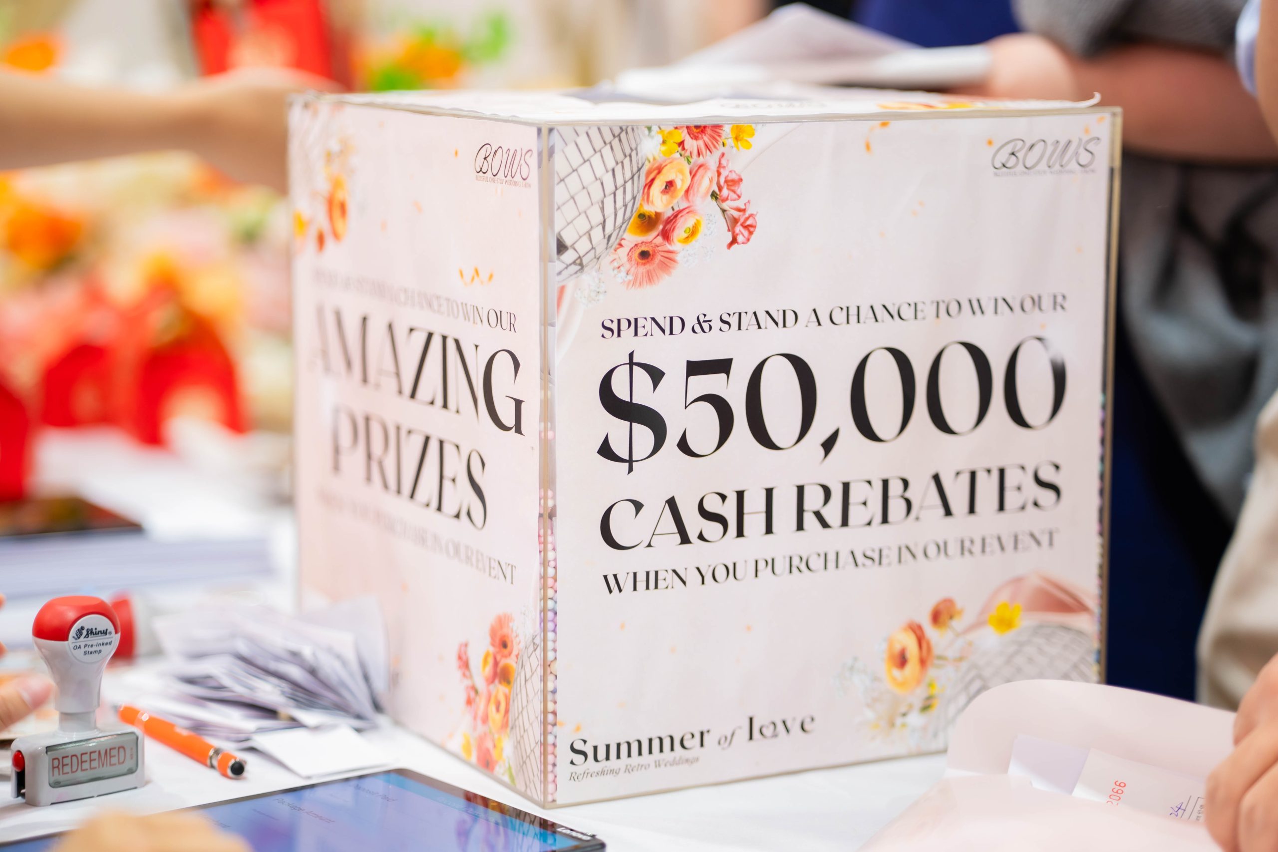 You can expect highly entertaining performances by wedding musicians as you enter the event, which is beautifully decorated to suit a unique theme for every BOWS. It is a one-stop place for couples to discover a wide range of wedding products and services, attend enriching workshops and find wedding inspiration. Don’t miss the main attraction of our event: a chance to win back deposits from our $50,000 Cash Rebate when you purchase from our vendors.